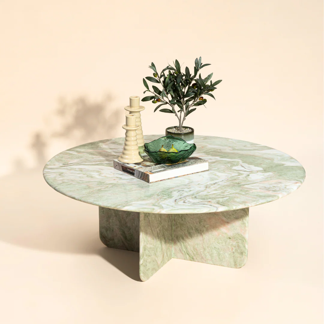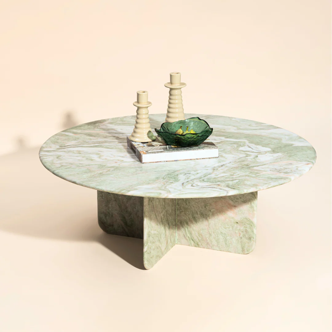 • Our newly designed marble table features gentle curves on both the tabletop and legs, creating a warm and inviting aesthetic. It’s a stunning accent piece for any space.