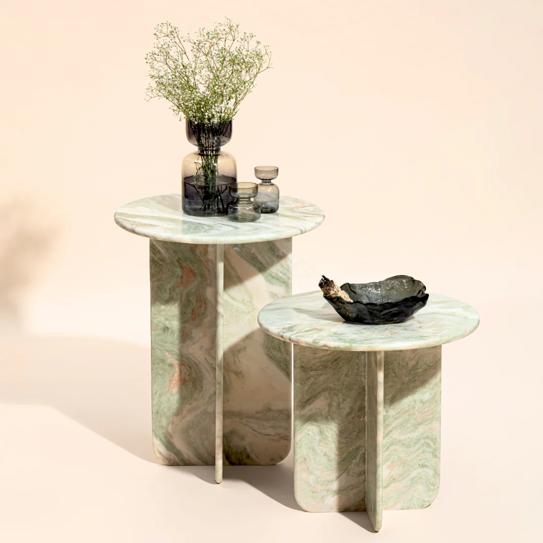 - Our newly designed marble tables feature gentle curves on both the tabletop and legs, creating a warm and inviting aesthetic. It’s a stunning accent piece for any space.